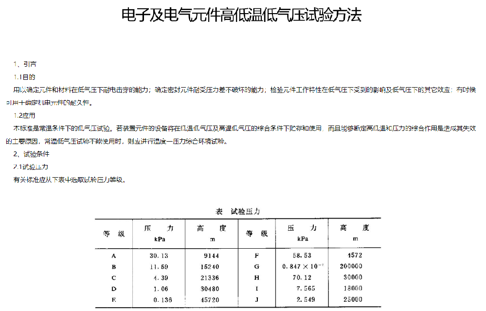 電子及電子原件高低溫低氣壓試驗方法